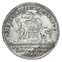 Ferdinando IV di Borbone (1759-1799) - Carlino o Medaglia 1768 - Zecca: Napoli - Diritto: busto della Regina Maria Carolina - Rovescio: genio alato e amorino poggiano su un'ara gli stemmi Borbone e Asburgo - gr. 2,00 - SPL