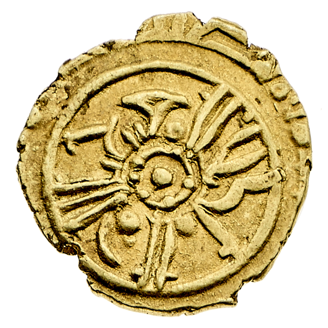 Ruggero II Re di Sicilia (1130-1154) - Tarì d'oro con il titolo regale databile a dopo il 1140 - Zecca: Palermo o Messina - Diritto: globetto al centro, intorno al quale si sviluppano due livelli di legenda circolare concentrica - Rovescio: croce innestata su un'asta e accostata da due coppie di sigle sovrapposte - gr. 1,16 - Fondi che conservano parte della luncentezza originale, SPL