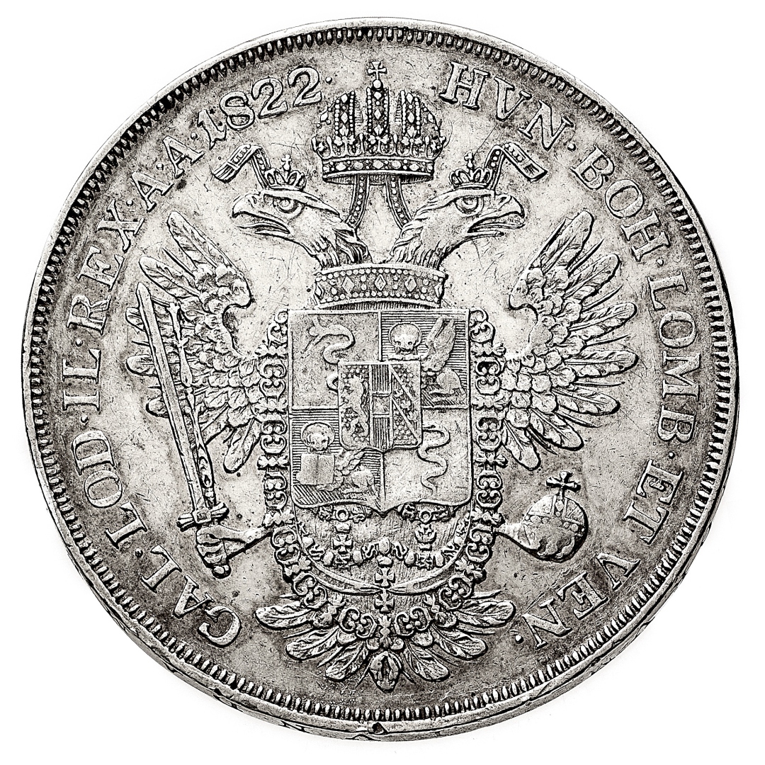Francesco I d'Asburgo (1815-1835) - Scudo Nuovo da 6 Lire 1822 - Zecca: Milano - Diritto: effigie laureata di Francesco I a destra - Rovescio: aquila bicipite coronata con lo stemma del Lombardo-Veneto sul petto - gr. 25,95 - Lievi segni di contatto, migliore di BB
