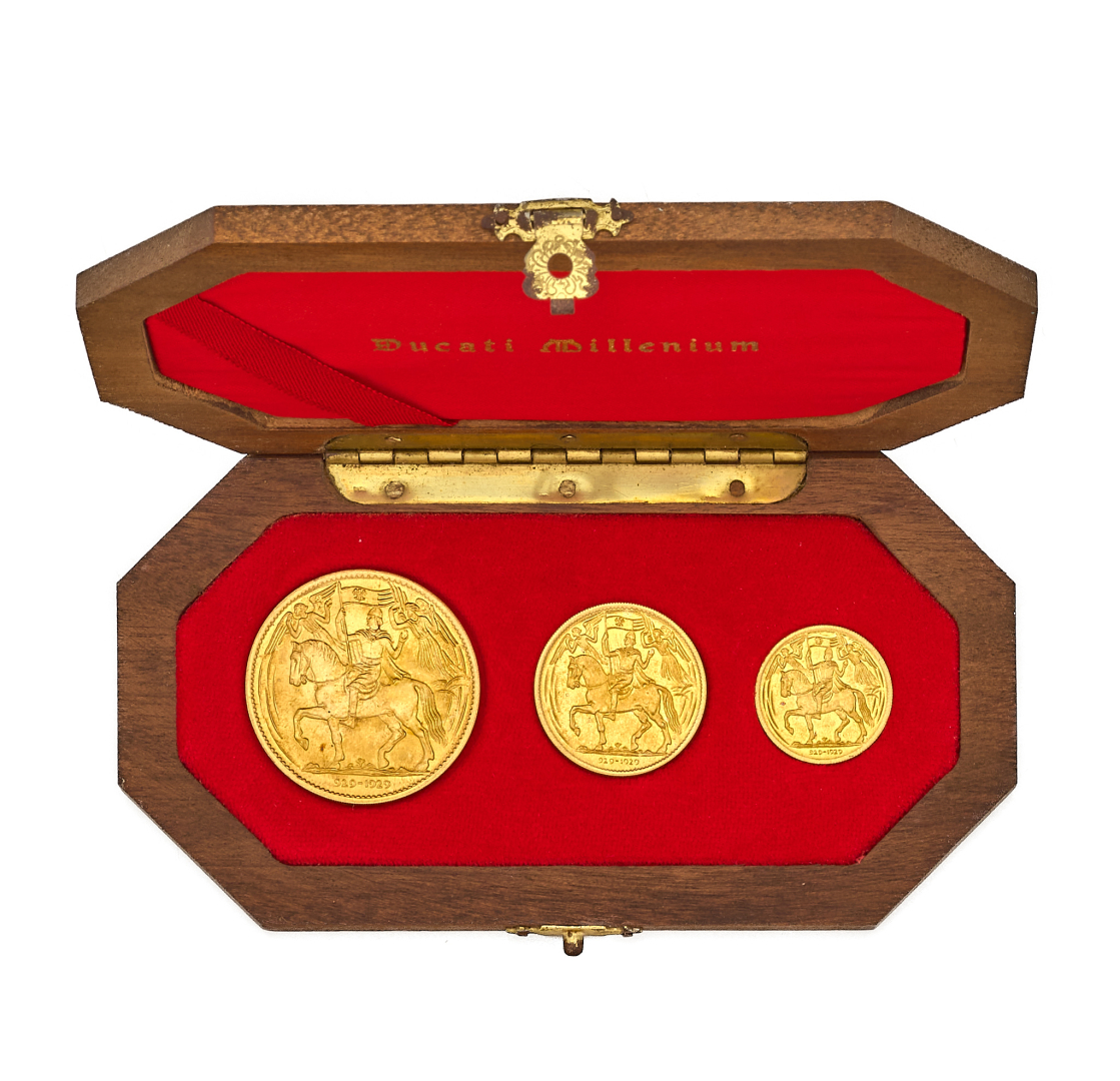 Repubblica Socialista (1960-1990) - 1,3 e 5 Ducati serie "Millenium" 1973 - Zecca: Kremnitz - Riconio ufficiale dell'emissione per il millesimo anniversario dall'introduzione del cristianesimo in Boemia - In cofanetto originale e con certificato di autenticità n. 534 su una tiratura di 700 esemplari - FDC