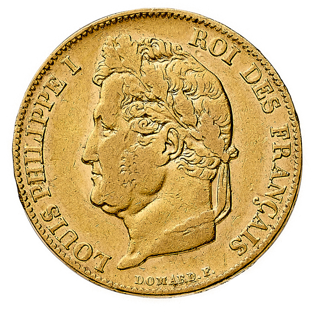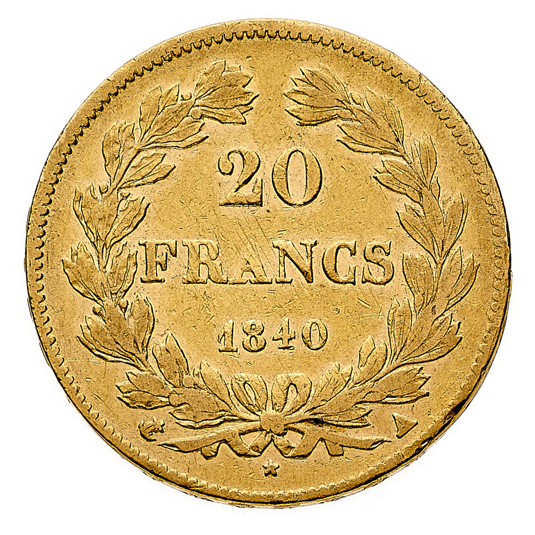 Louis Philippe I (1830-1848) - 20 Franchi 1840 - Zecca: Parigi - Diritto: effigie del Re a sinistra - Rovescio: valore e data entro due rami di alloro - gr. 6,41 - Migliore di BB