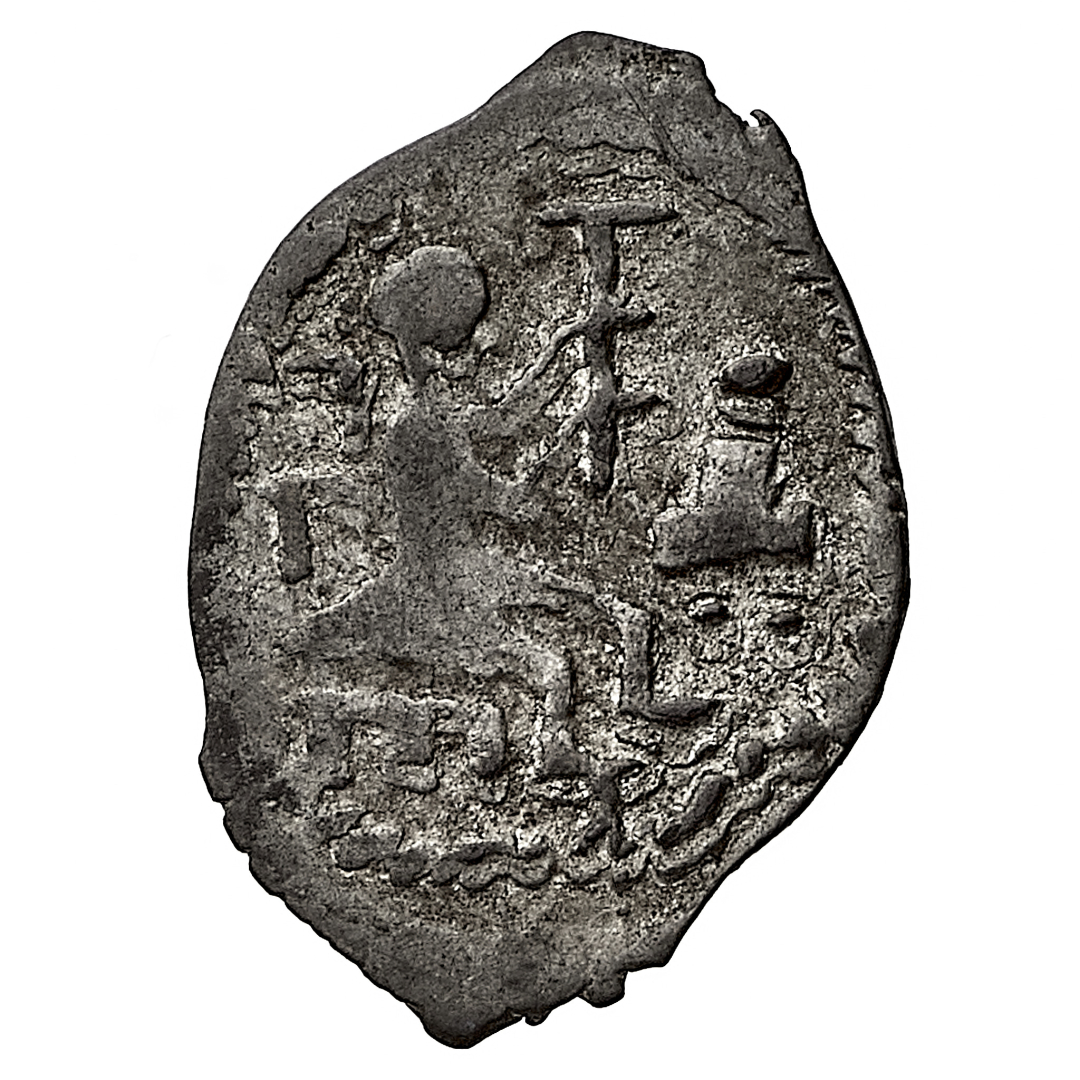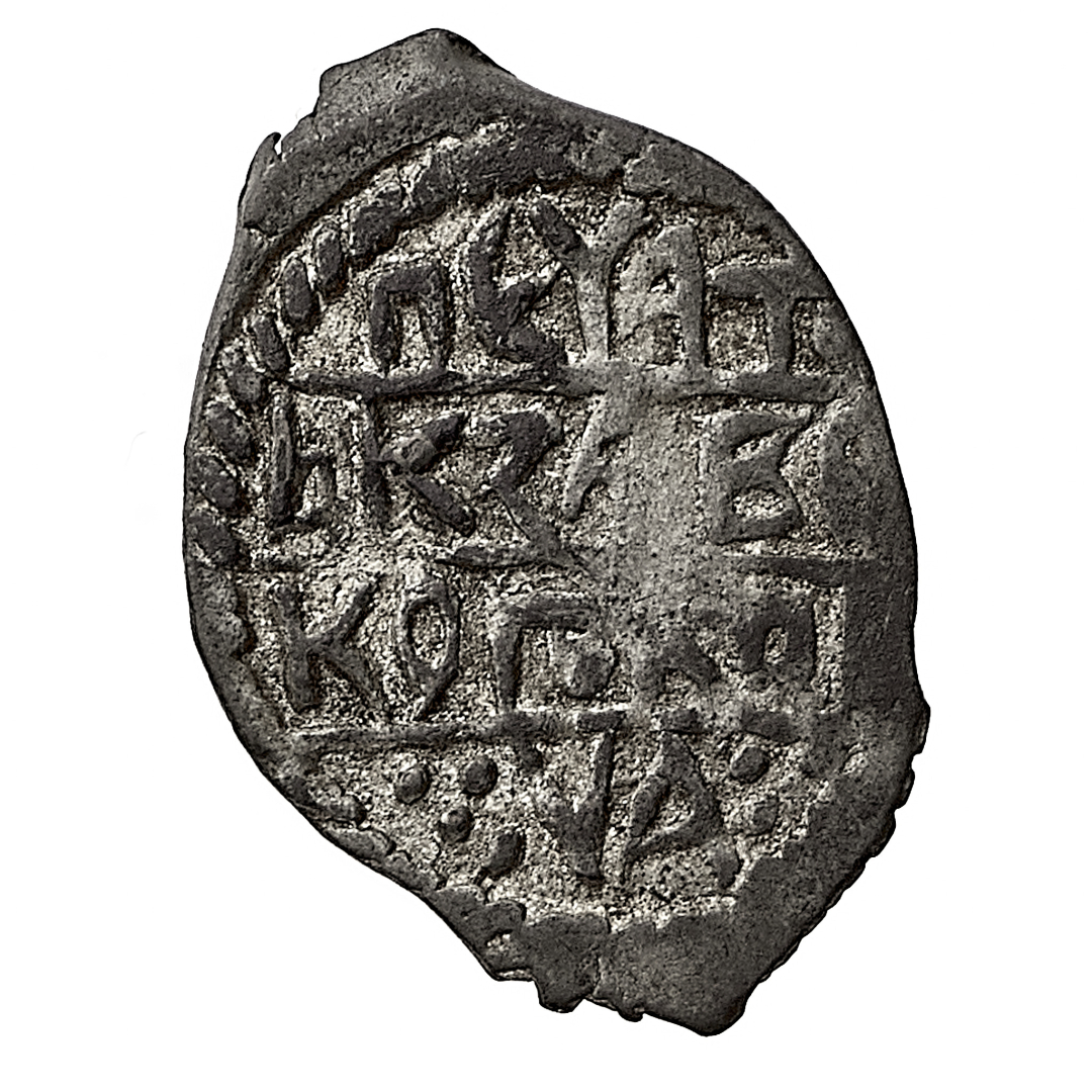 Boris Alexandrovich (1435-1450) - Tver Denga - Diritto: addetto della zecca seduto a destra tiene un martello con entrambe le mani; di fronte un'incudine con sopra una moneta - Rovescio: legenda su quattro righe - gr. 0,72 - Rara - Migliore di BB - Proveniente dall'asta Katz eAuction 54, 28.12.2021, n. 1158