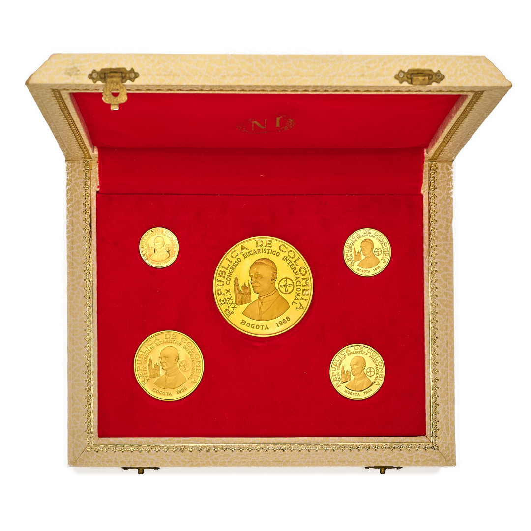 Repubblica (dal 1886) - Serie completa di 5 valori (100, 200, 300, 500 e 1.500 Pesos in oro) 1968 - In cofanetto originale con certificato COA n. 2878 - FDC