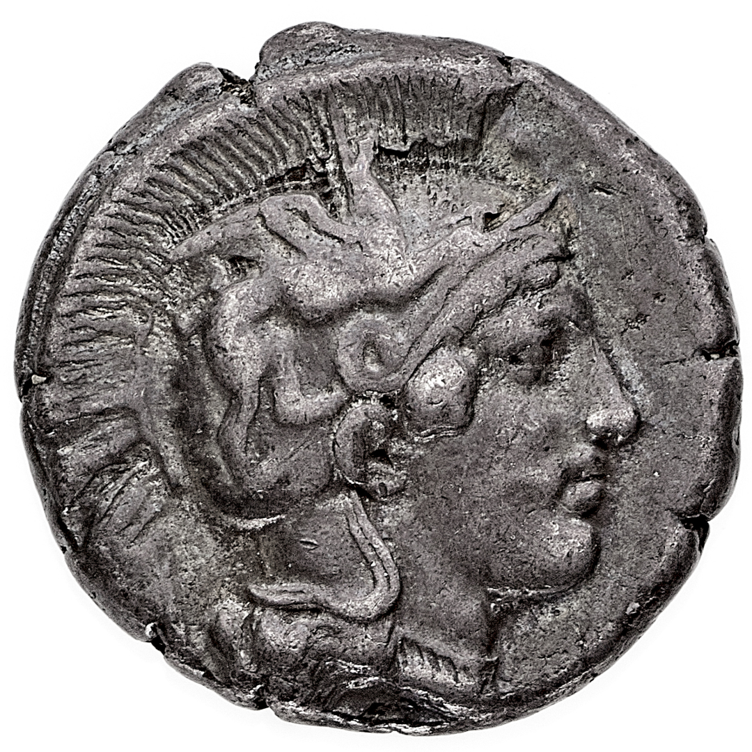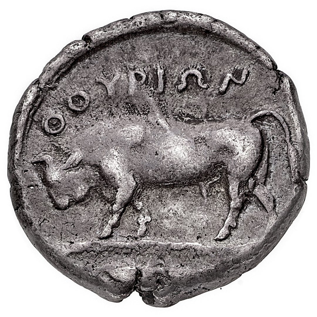 Thurium - Statere databile al periodo 445-400 a.C. - Diritto: testa di Atena a destra con elmo attico crestato e ornato da un grifone - Rovescio: toro nell'atto di caricare verso sinistra - gr. 7,91 - BB