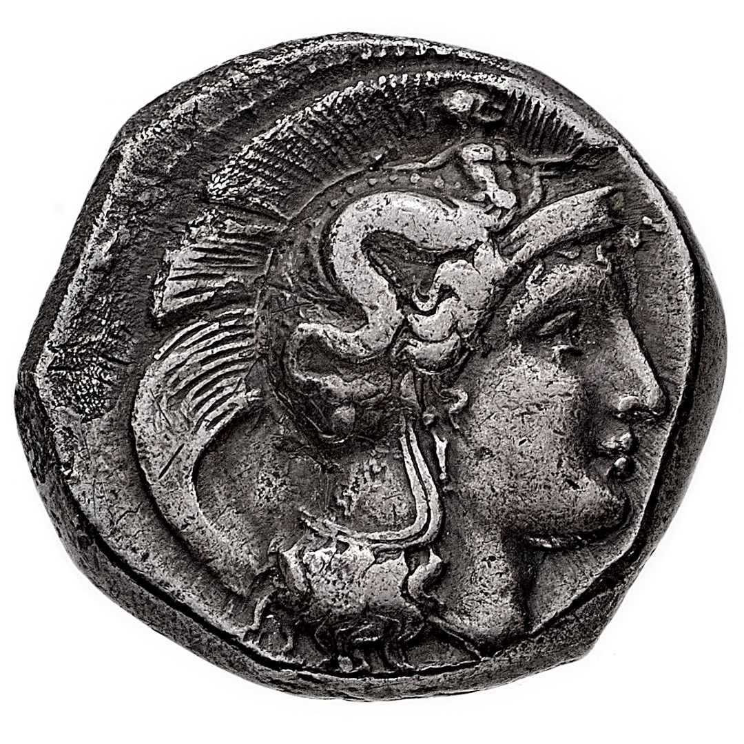 Thurium - Statere databile al periodo 300-280 a.C. - Diritto: testa di Atena a destra con elmo attico crestato e ornato dal mostro Scilla - Rovescio: toro nell'atto di caricare verso destra; in esergo una stella - gr. 7,88 - Non comune - Patina di medagliere, migliore di BB