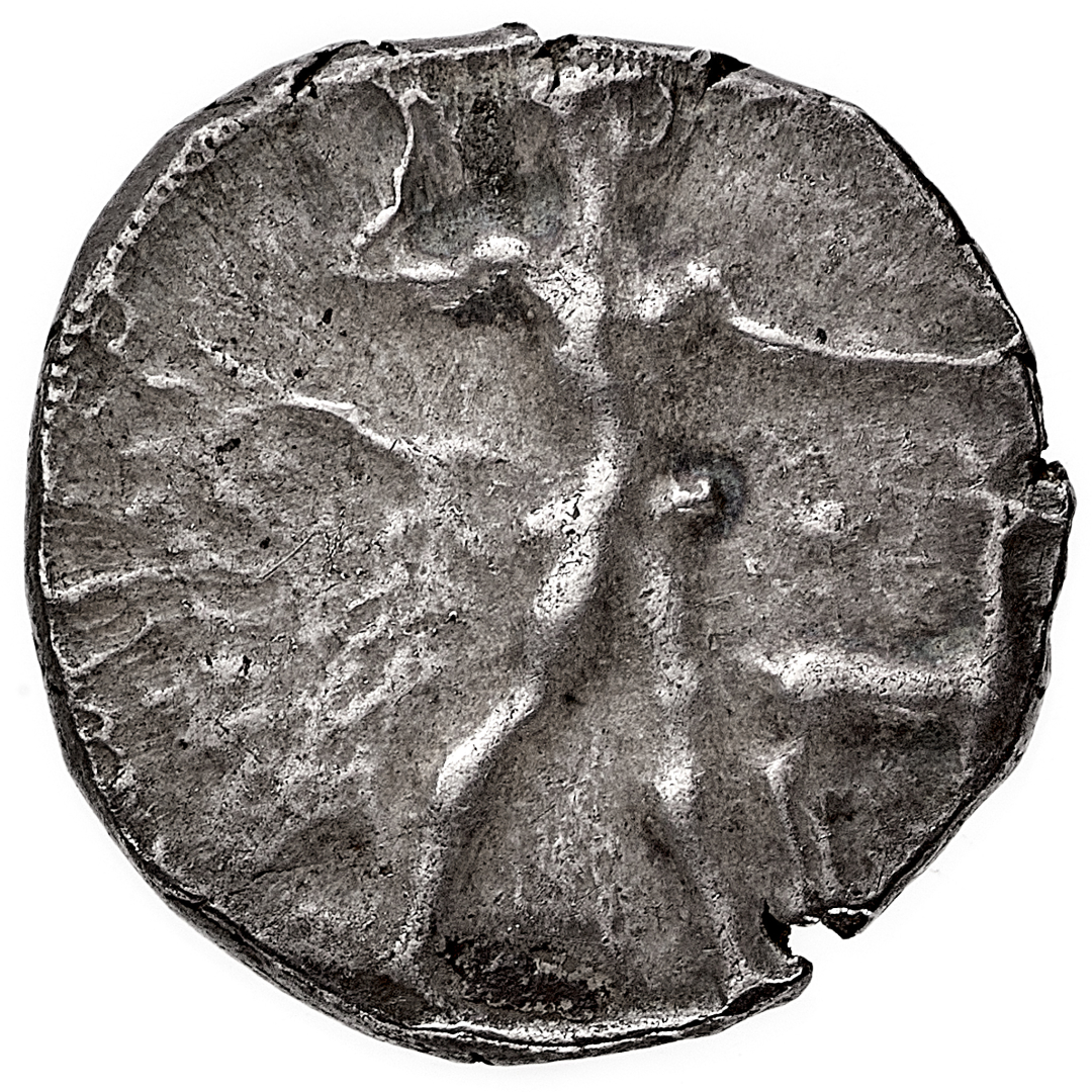 Caulonia - Statere databile al periodo 475-388 a.C. - Diritto: Apollo in cammino verso destra tiene un ramo con la mano destra alzata; nel campo, a destra, un cervo, a sinistra, una corona di quercia - Rovescio: cervo stante a destra - gr. 8,02 - Non comune - BB
