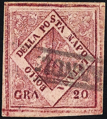 1858 - 20 gr. II tipo carminio - Cert. Bolaffi - Firme E.D.
