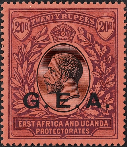1917 - Africa Orientale Tedesca - Occupazione britannica 20 r. violetto e nero su carta rossa