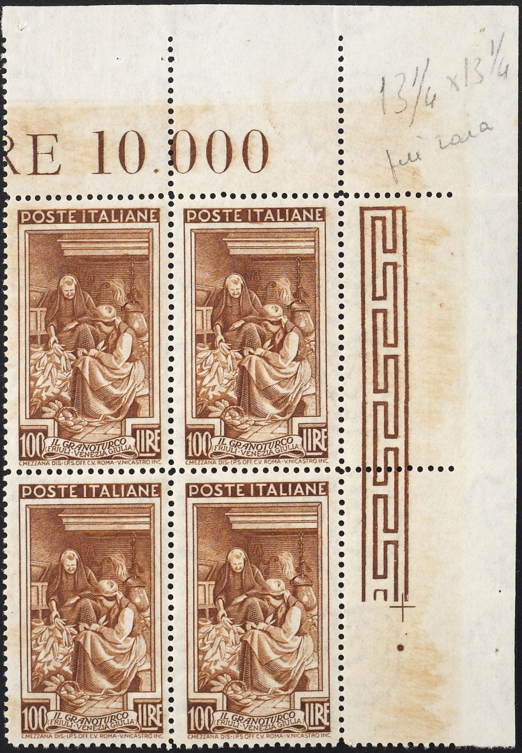 1950/57 - Italia al lavoro ruota e stelle - Le due serie in blocchi di quattro bordo o angolo di foglio - Da esaminare