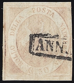 1858 - 50 gr. rosa brunastro - Firme E.D. e Raybaudi
