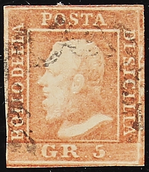 1859 - 5 gr. vermiglio chiaro I tavola - Da esaminare - Cert. Diena
