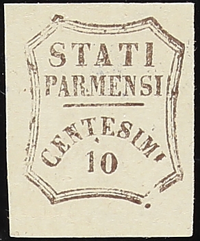 1859 - 10 c. bruno varietà "0" grasso - Cert. Sorani