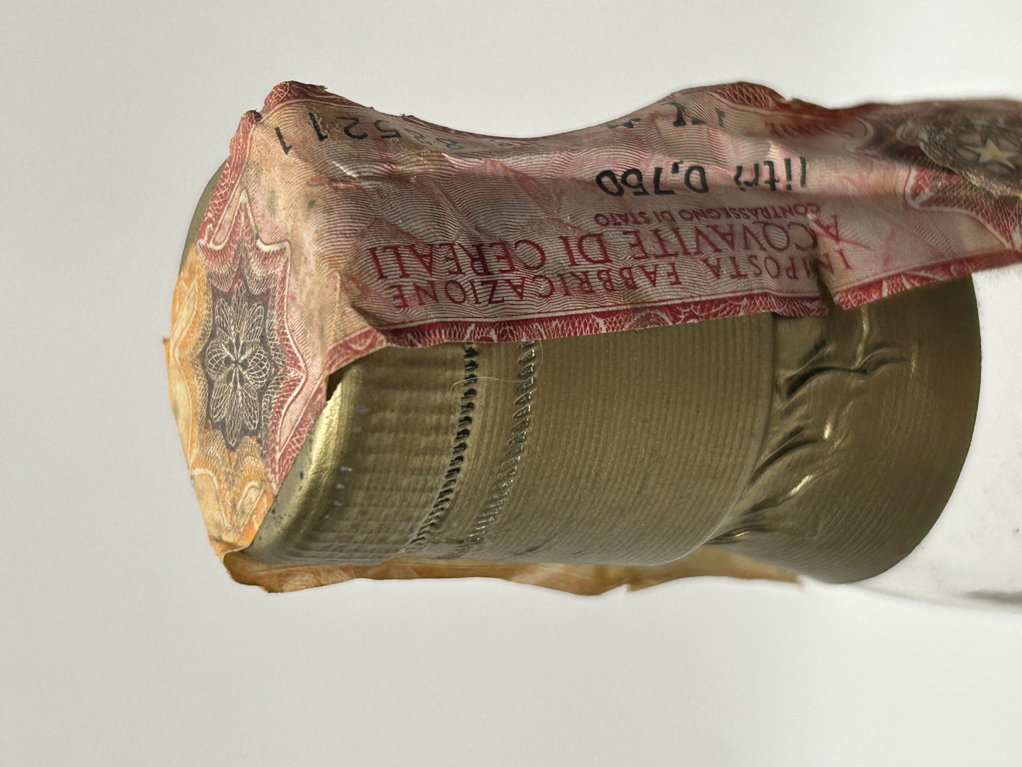 Girocollo, etichetta lievemente macchiata, tappo in sughero
