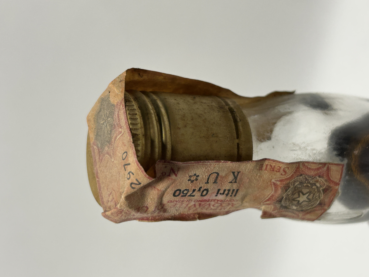 Upper shoulder, stained label, metallic cap