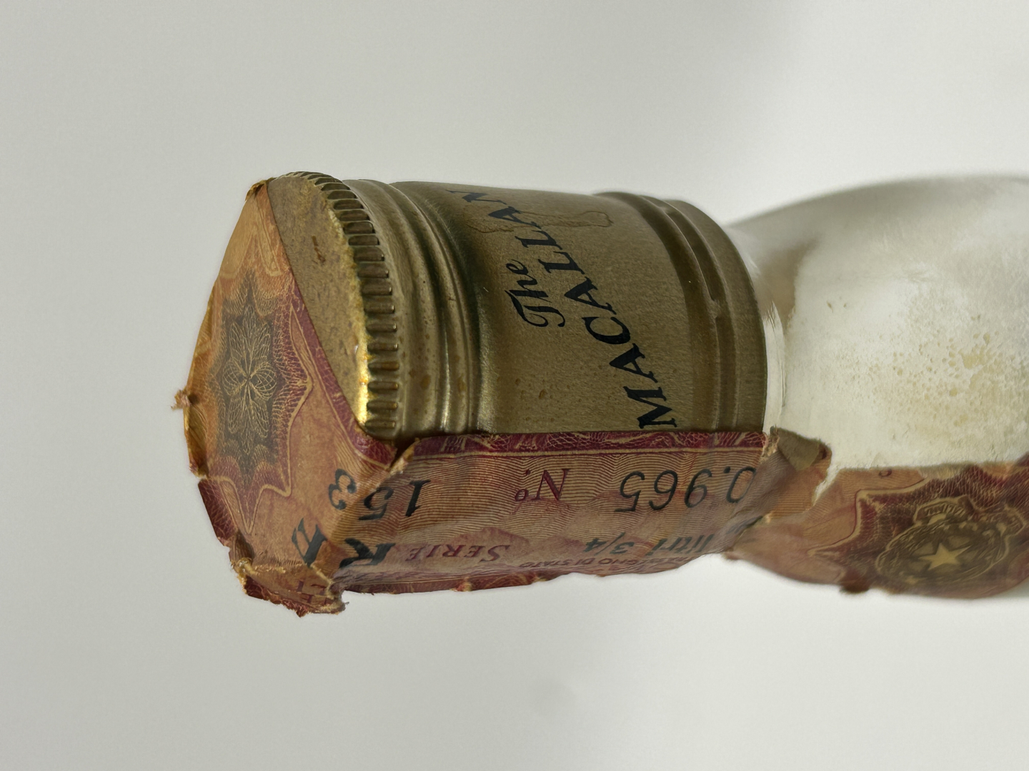 Below low-shoulder, slightly damaged label