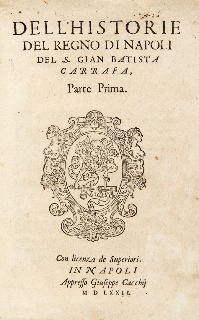 [Napoli]. Carafa, Giovanni Battista. Dell'historie del regno di Napoli. Napoli, Giuseppe Cacchi, 1572 (1571).