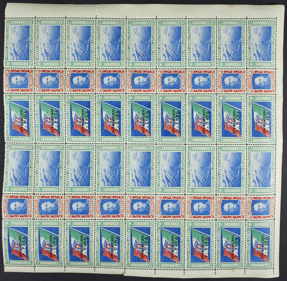 1933 - Balbo trittici - Le venti sigle ottenute allegando le coppie I - BALB e I - BORG i due fogli senza la prima fila superiore - Da esaminare