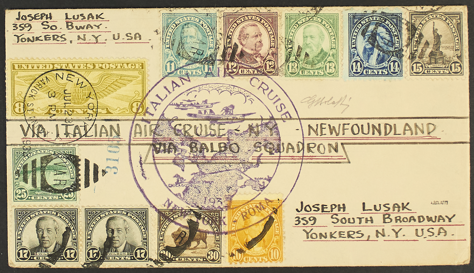 1933 - Crociera Balbo - Tappa New York - Shoal Harbour - L'aerogramma del 23 luglio affrancato con Stati Uniti 1,72 $ - Splendido ed eccezionalmente conservato - Cert. Bolaffi