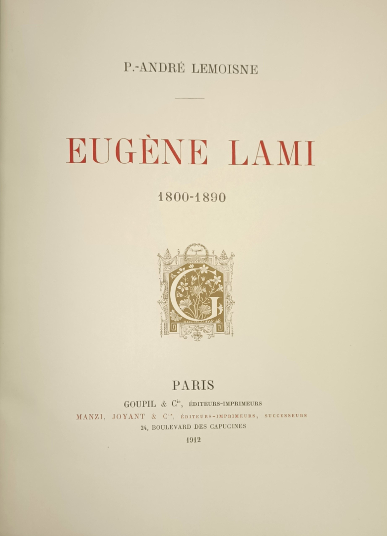 [Lami]. Lemoisne, Paul-Andre. Eugène Lami. Parigi, Goupil, Manzi, Joyant, 1912.