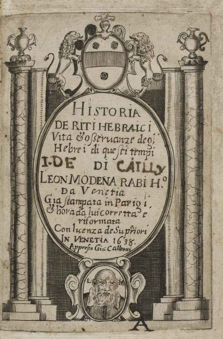 [Judaica]. Leone da Modena. Historia de riti hebraici vita & osservanze degl'hebrei. Venezia, Giovanni Calleoni, 1638.