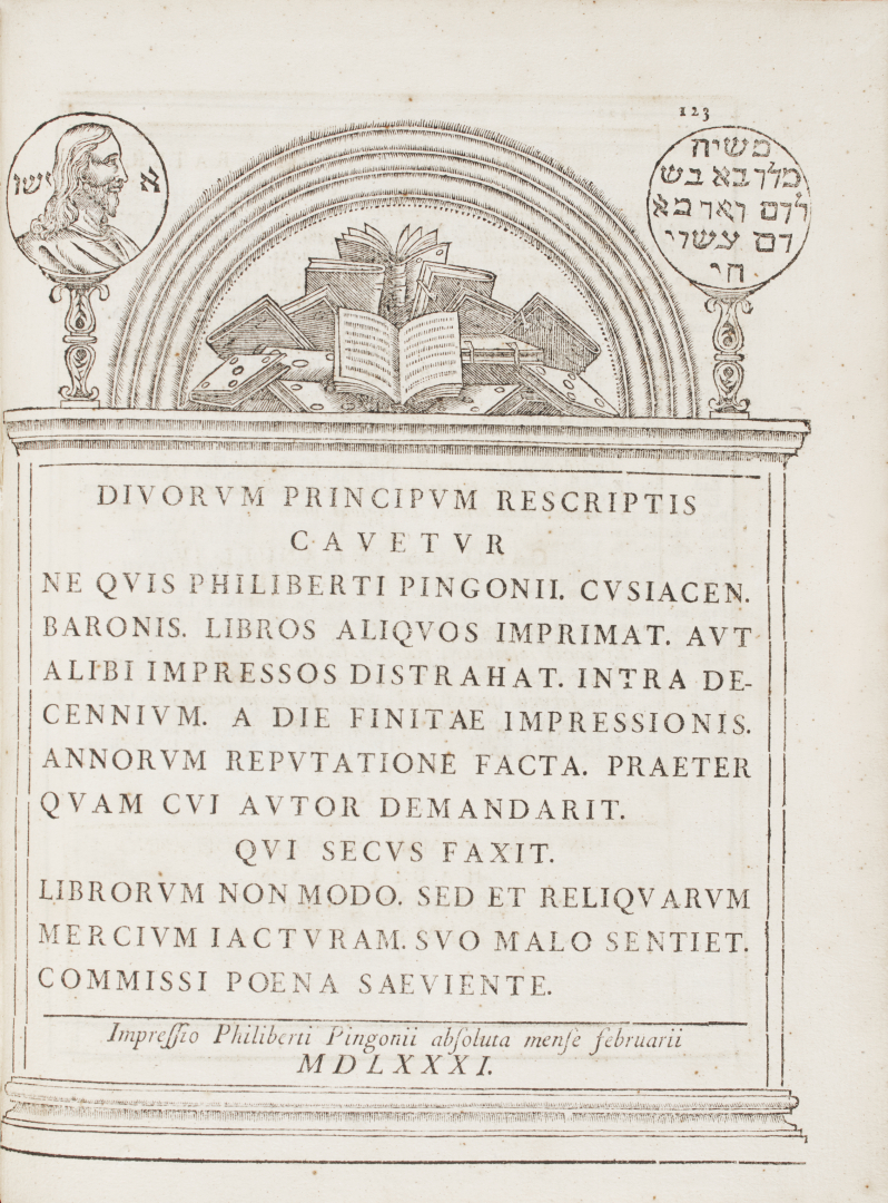 PHILIBERTI PINGONII SABAUDI AUGUSTA TAURINORUM.