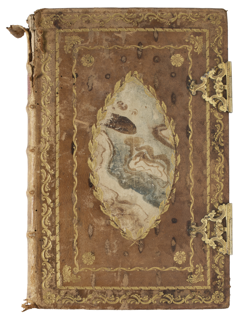 [Legatura]. Legatura Legatura di fine secolo XVIII (203 x 135 mm) in vitello biondo con al centro grande fleuron in cartonato marmorizzato, decorazione in oro ai piatti e al dorso, fermagli in metallo dorato, che contiene l'Uffizio della B.V. Maria per tutti i tempi dell'anno nell'edizione romana degli eredi di Barbiellini del 1756. Nel lotto anche l'Accademia degli Immobili nell'edizione di Alessandria del 1842 in bella legatura coeva in marocchino rosso con ricca decorazione in oro ai piatti recante l'ex libris del Duca di Genova, e Il libro quinto dell'Eneide versione di Giovanni Prati del 1868 con dedica a stampa ad Umberto di Savoia in legatura coeva in marocchino biondo alle armi di casa Savoia con decorazione romantica ai piatti.