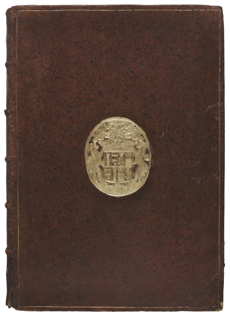 In 2° (383 x 272 mm); [20], 15-166, [6] pagine. Occhietto, frontespizio inciso in rame, ritratto inciso, 42 illustrazioni incise in rame a piena pagina e 22 a mezza pagina (alone.) Legatura coeva in bazzana con grande supra libros nobiliare ai piatti, titolo in oro al dorso, tagli a spruzzo (piccole mancanze alle cuffie).