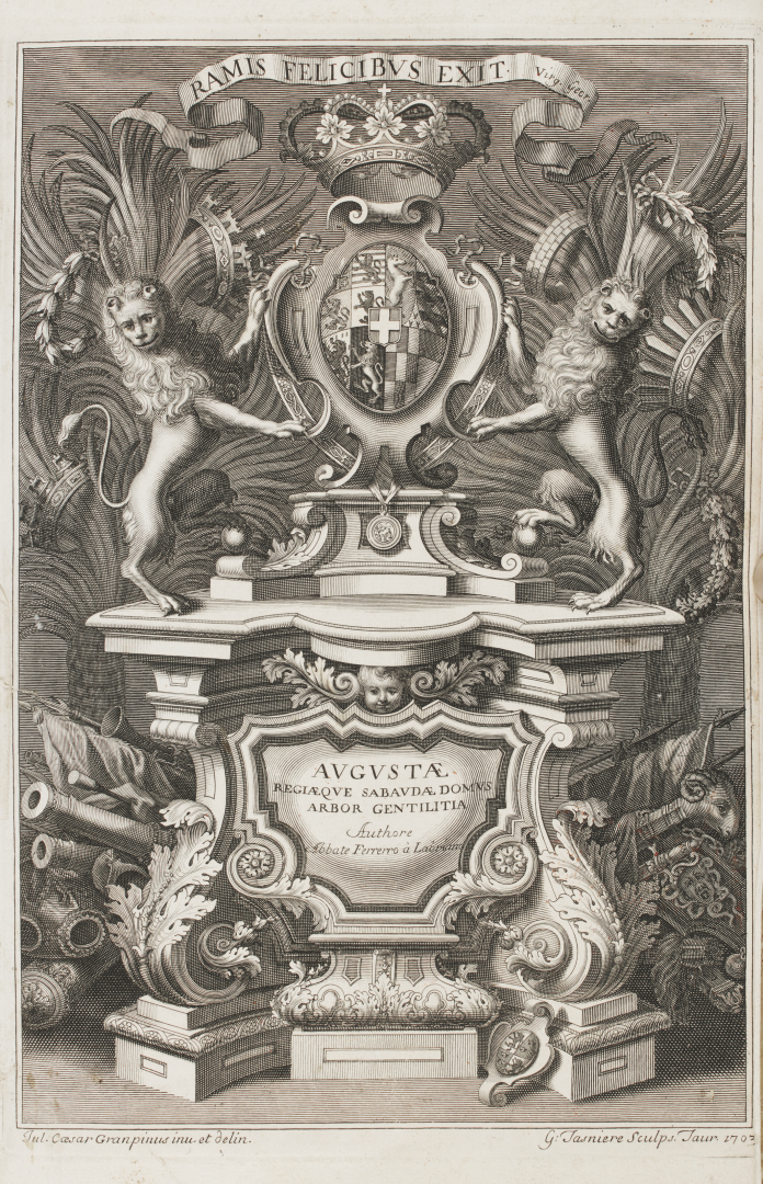 [Savoia]. Ferrero, Francesco Maria. Augustae regiaeque Sabaudae domus arbor gentilitia regiae celsitudini Victori Amedeo II. Sabaudiae duci. Torino, Giovanni Battista Zappata, 1702.
