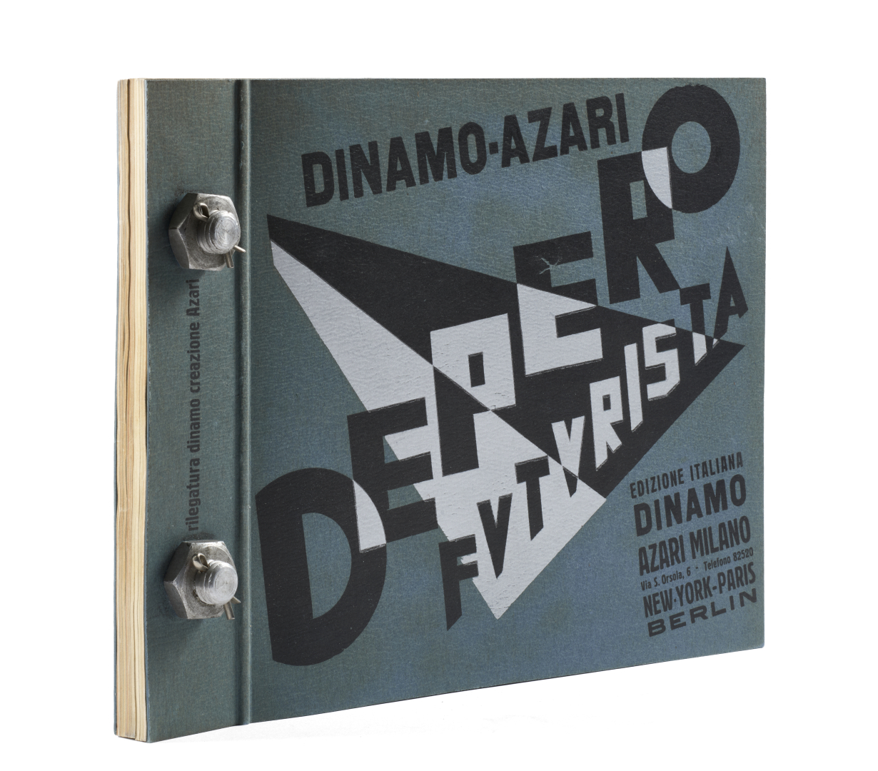 L'"imbullonato" di Depero fu da sempre considerato un gioiello di inventiva grafica ed editoriale e un vero e proprio libro-feticcio del collezionismo. Jentsch, The Artist and the book in Twentieth-Century Italy, 177: “One of the avant-garde masterpieces in the history of the book-object”. La tiratura dichiarata è di 1.000 esemplari, ma non fu mai realizzata a causa dei costi di pubblicazione elevati che comprendevano anche l'assemblaggio manuale di ciascuna copia. La presente copia non numerata, verosimilmente una delle pochissime copie di presentazione, riflette il legame particolare tra Marangoni e Depero. Nella I Biennale di Monza, Depero era responsabile per la sala del Trentino e si occupò anche dell'allestimento di una sala monografica dedicata alla sua "Casa d'arte". Nel lotto anche una fotografia che raffigura la Sala della Casa d'arte futurista Depero, al secondo piano nobile, della III Biennale del 1927.