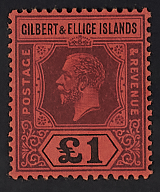 GIORGIO V 1 £. VIOLETTO E NERO SU CARTA ROSSA