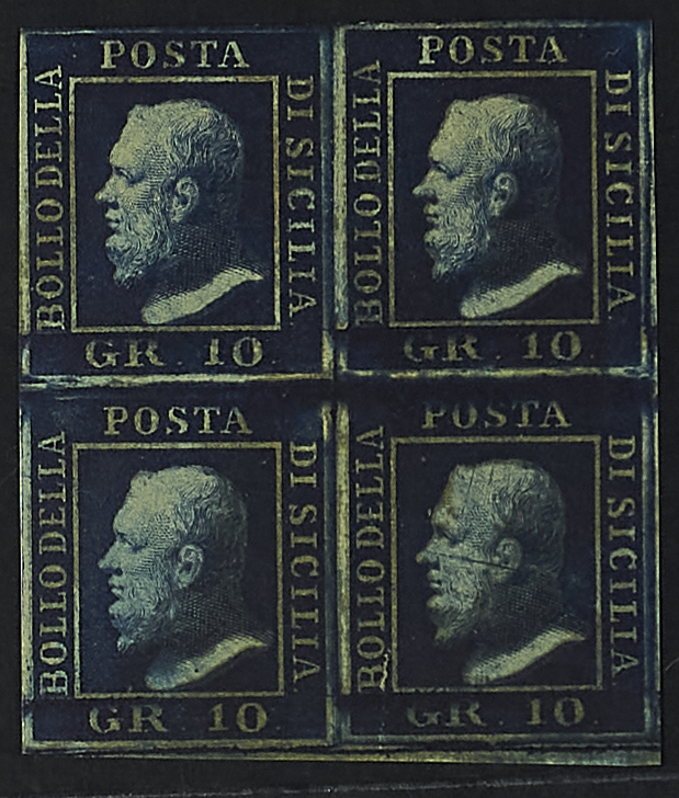 1859 - 10 gr. indaco nero blocco di quattro (pos. 83/84 - 93/94) - Firma En. D.