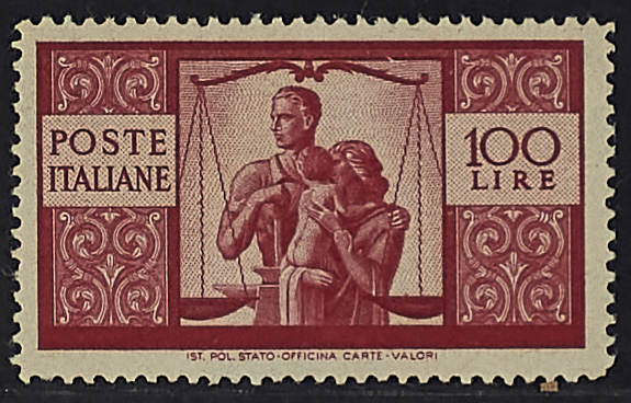 1945 - Democratica 30 L. + 100 L. dent 14 x 14 1/2 filigrana ruota II tipo pos. CS