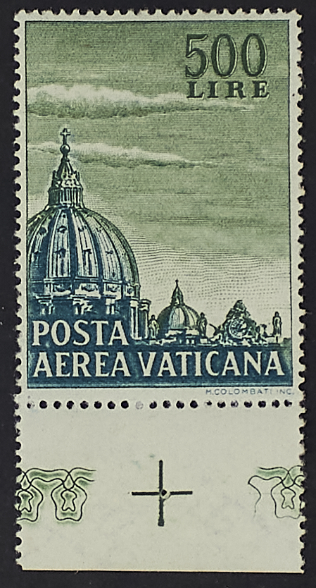 1958 - Cupola 500 L. dent. 14 a pettine bordo di foglio inferiore - Raro - Cert. Oliva