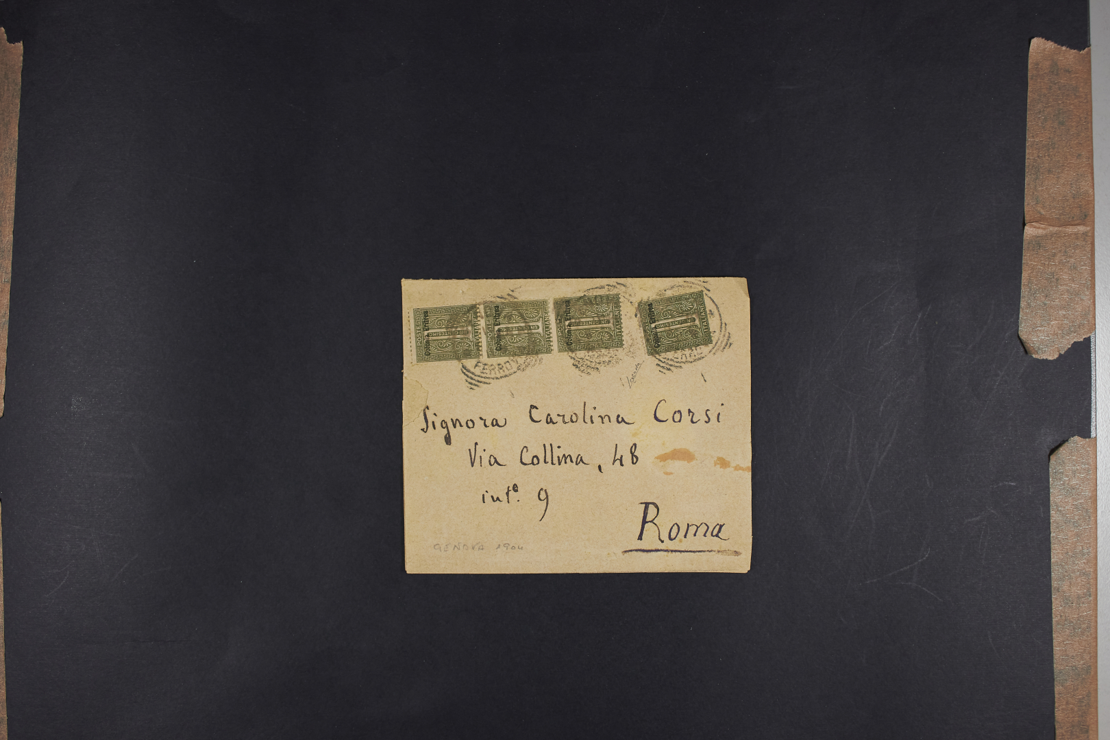1893 - Prima emissione 1 c. verde oliva striscia verticale di tre ed esemplare singolo su sovracoperta di lettera del 1904 da Genova per Roma - Uso non comune al di fuori del territorio della colonia