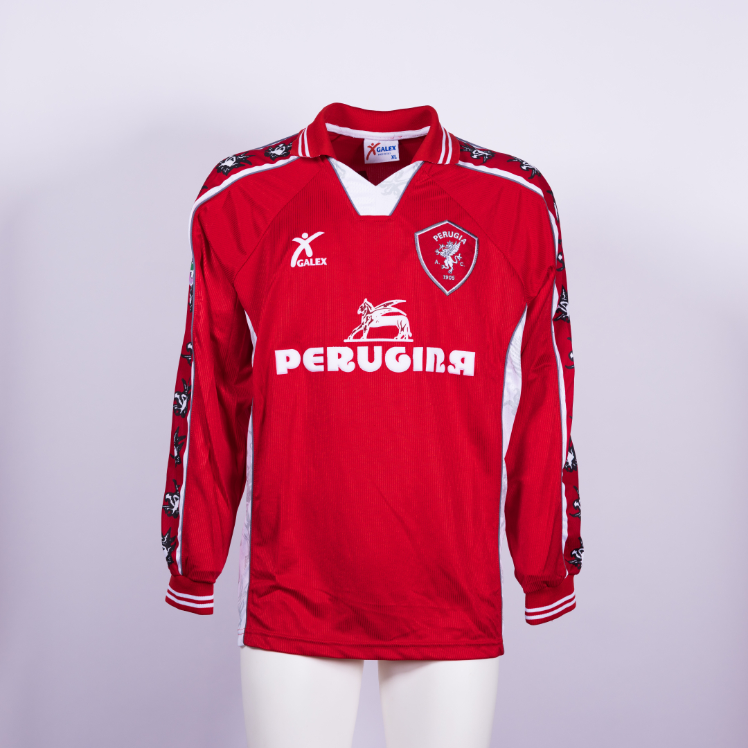 Sul fronte: sponsor commerciale Perugina e sponsor tecnico tridimensionali floccati, stemma del club cucito con ricamo.