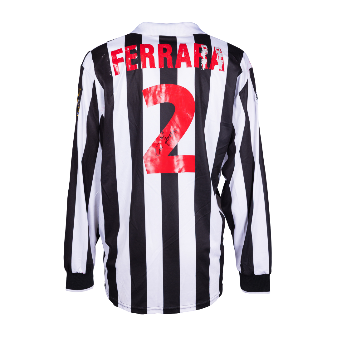 Sul retro: nome e numero 2 in rosso applicati. Sul numero firma autografa “Ciro Ferrara”.