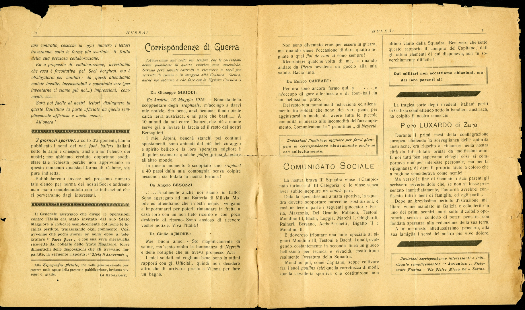 Primo “Numero di Saggio” del 10 giugno 1915 in 5 pagine stampate.