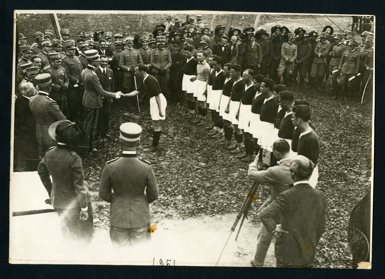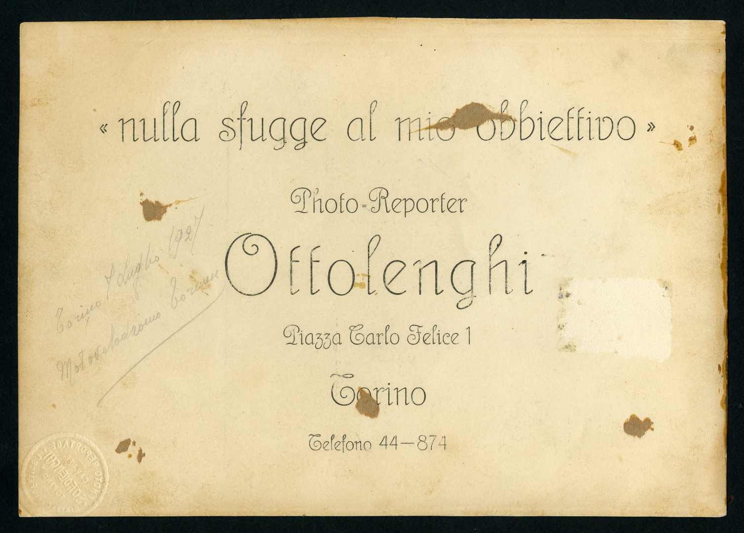 Stampa fotografica ufficiale dell'epoca del Photo-Reporter Ottolenghi di Torino scattata il 7 luglio al motovelodromo di Torino in presenza dei Reali. Alcuni segni del tempo. Rara.