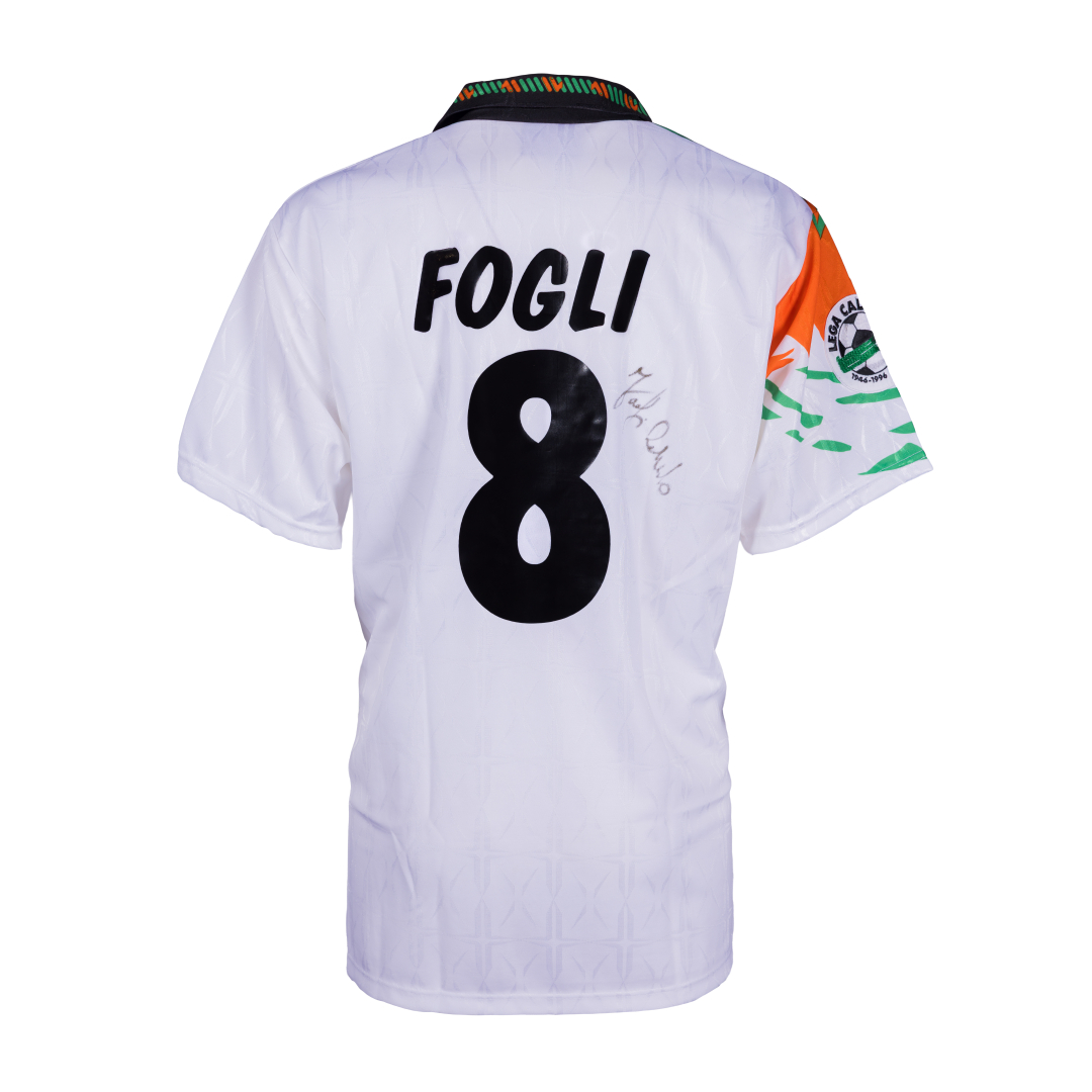 Sul retro: nome e numero 8 applicati e a lato firma autografa “Fogli Roberto”.