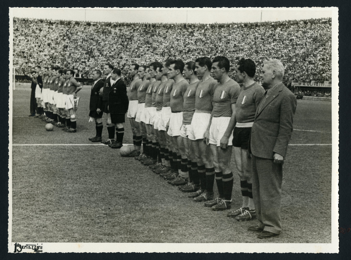Splendida raccolta di stampe fotografiche Bertazzoni oltre a cartoline fotografiche del periodo che ritraggono i campioni di allora sia in nazionale che nella squadra di club.