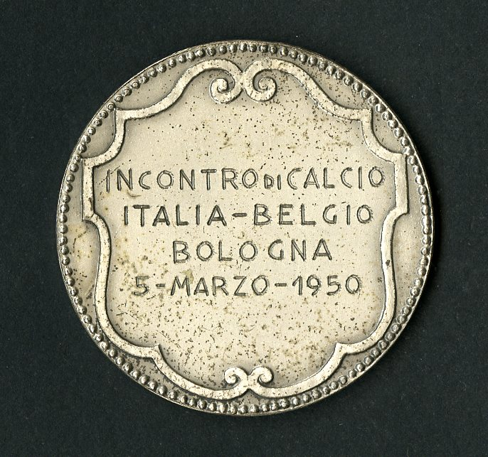 Raro fascicolo, di 48 pagine, che presentava la partita amichevole contro i Diavoli Rossi, disputata a Bologna e conclusa con una vittoria degli Azzurri per 3-1. Il libretto, con autografi dei calciatori italiani stampati in copertina, contiene interessanti resoconti della prima partita della nazionale del 1910 a Milano, di tutte quelle disputate fino ad allora a Bologna e un racconto di Angelo Schiavio, grande attaccante e poi allenatore. L'Italia schierava un giovane Giampiero Boniperti che fu però sostituito da Ermes Muccinelli, autore di una doppietta al suo esordio in nazionale. Nel lotto anche la medaglia commemorativa dell'incontro, a firma di Giuseppe Romagnoli, importante scultore e medaglista.
