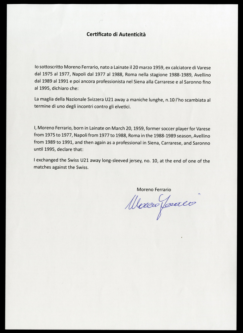 Maglia scambiata al termine di uno degli incontri di calcio con la Nazionale Italiana U21 o Olimpica.