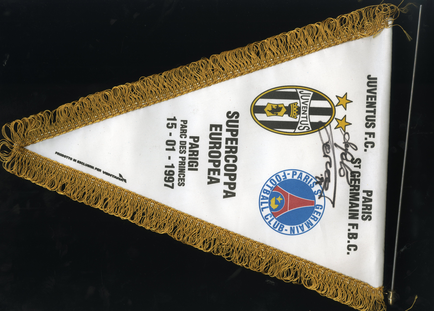Gagliardetto relativo all’incontro di Supercoppa Europea Paris St. Germain F.B.C. vs Juventus F.C. (1-6) con