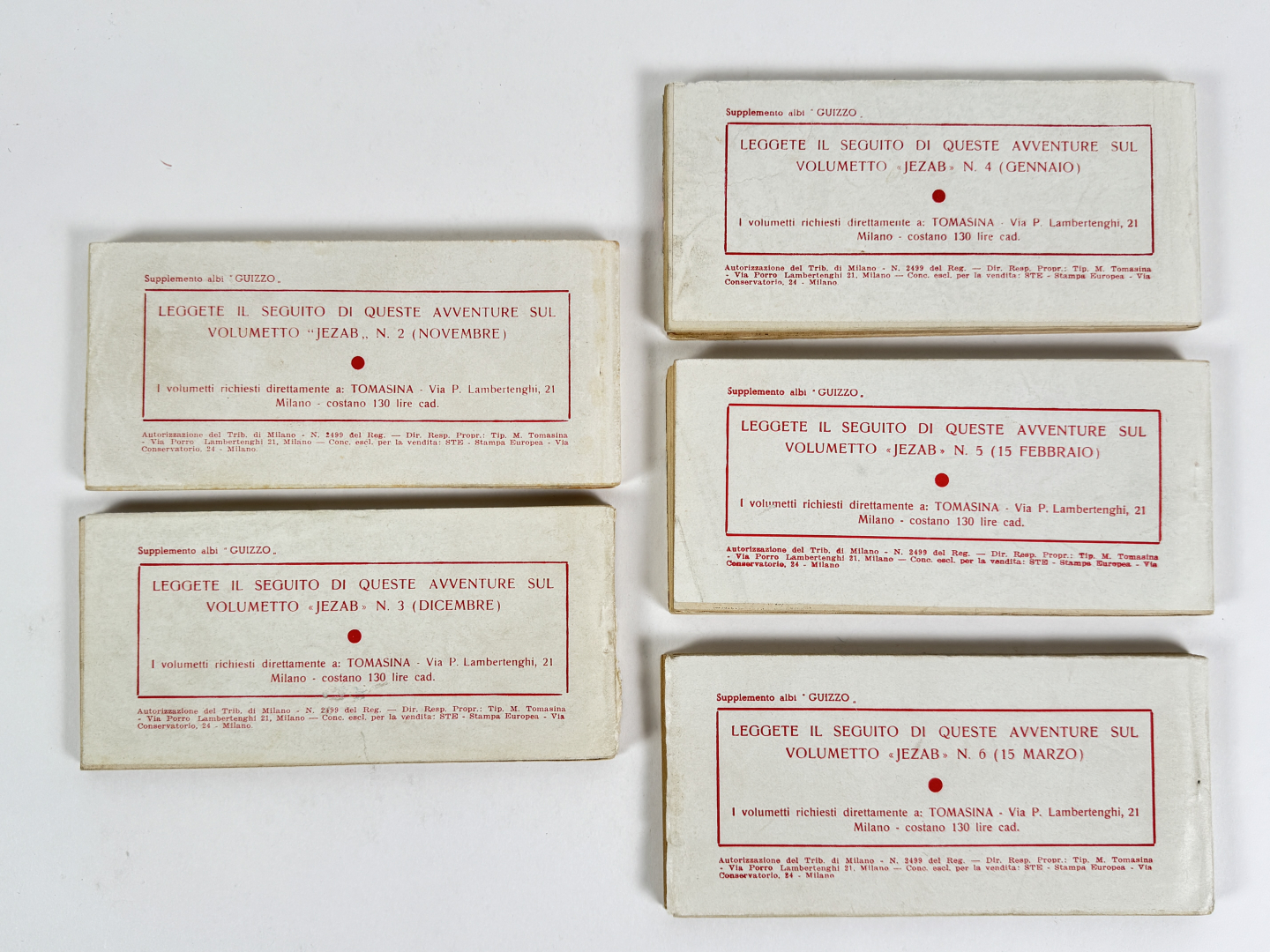 Sequenza delle prime cinque raccolte che arrivano fino al N. 34 della serie. In ottime condizioni.