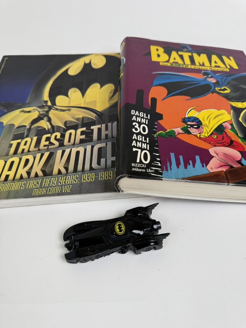 Lotto composto da due volumi e dalla batmobile realizzata dalla ERTL In buone condizioni.