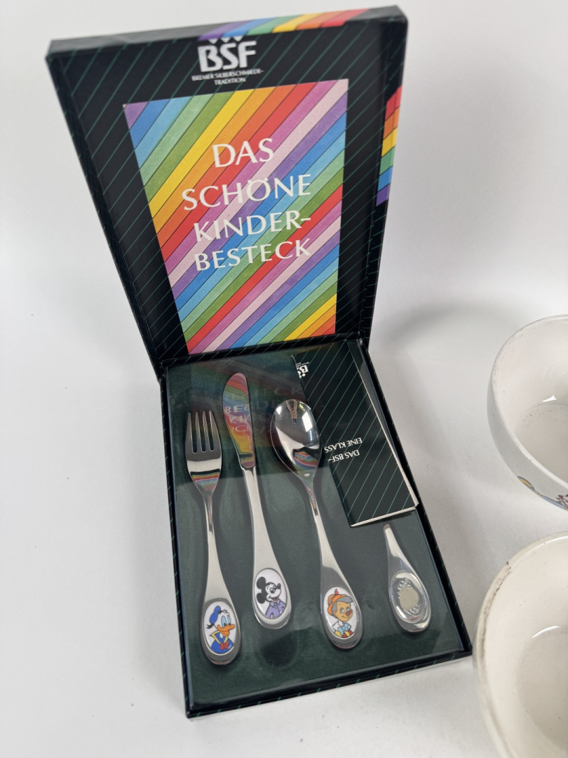 Lotto composto da un set di posate BSF e da quattro ciotole Ceramica Pagnossin. Posate come nuove, ciotole in buone condizioni.