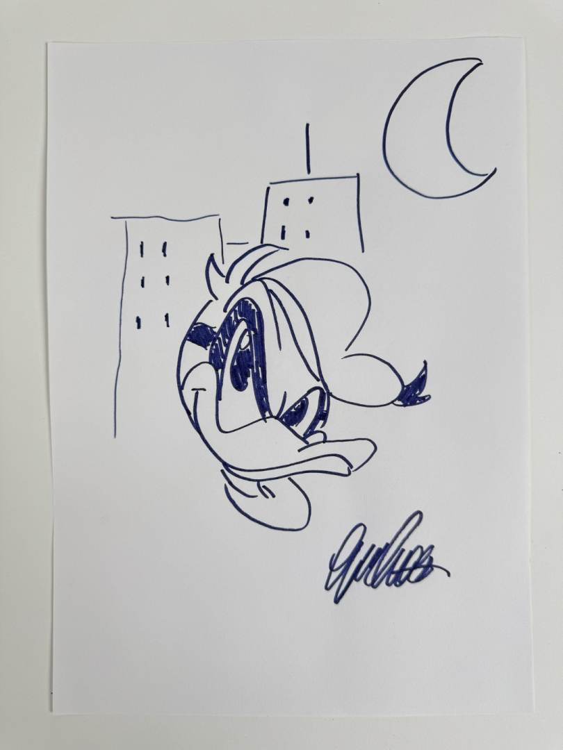 illustrazione a pennarello blu su carta. Firmata. Buone condizioni.