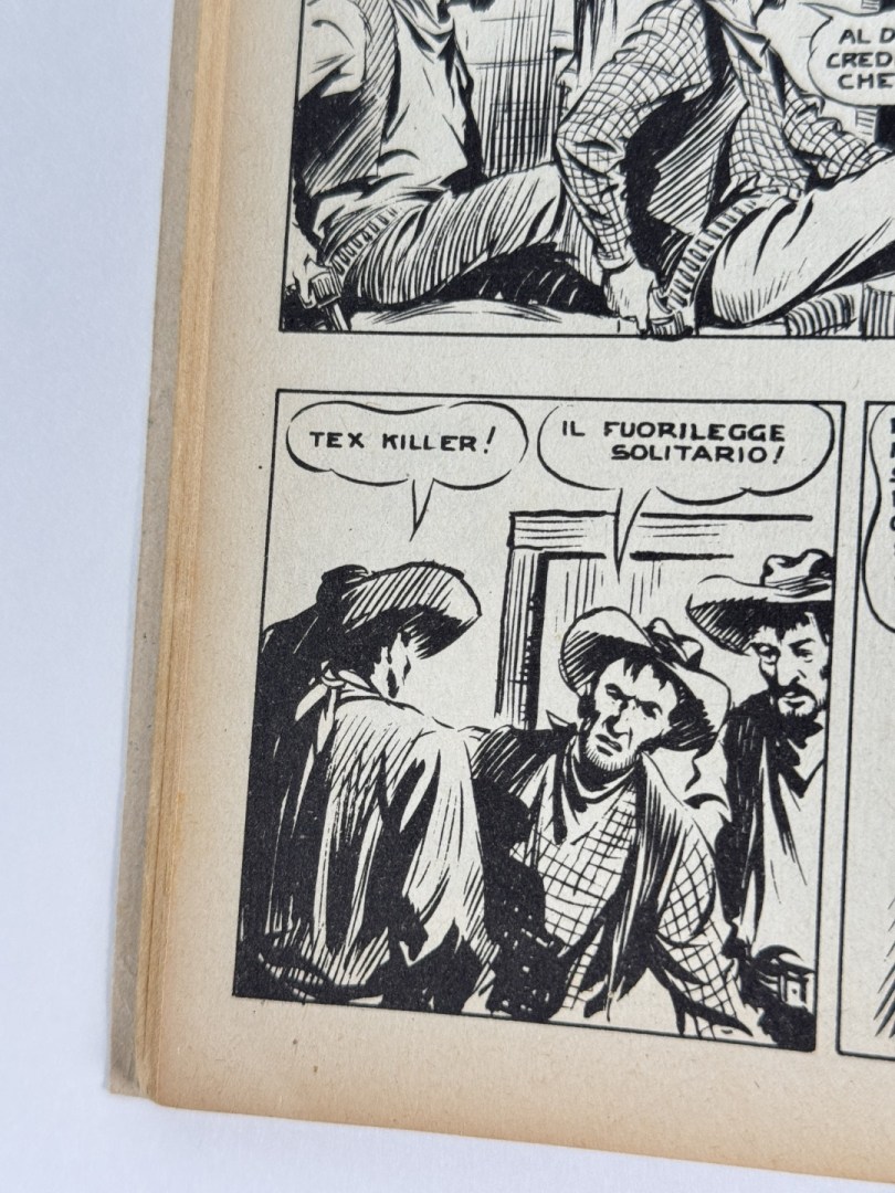 Ed. Audace, Aut. 478, non censurata. Albo nella versione con l'errore "Tex Killer", considerata la prima effettiva edizione dell'albo. Esemplare in eccellente stato di conservazione. Piccola piega all'angolo superiore destro della copertina, interno con lievi segni del tempo.
