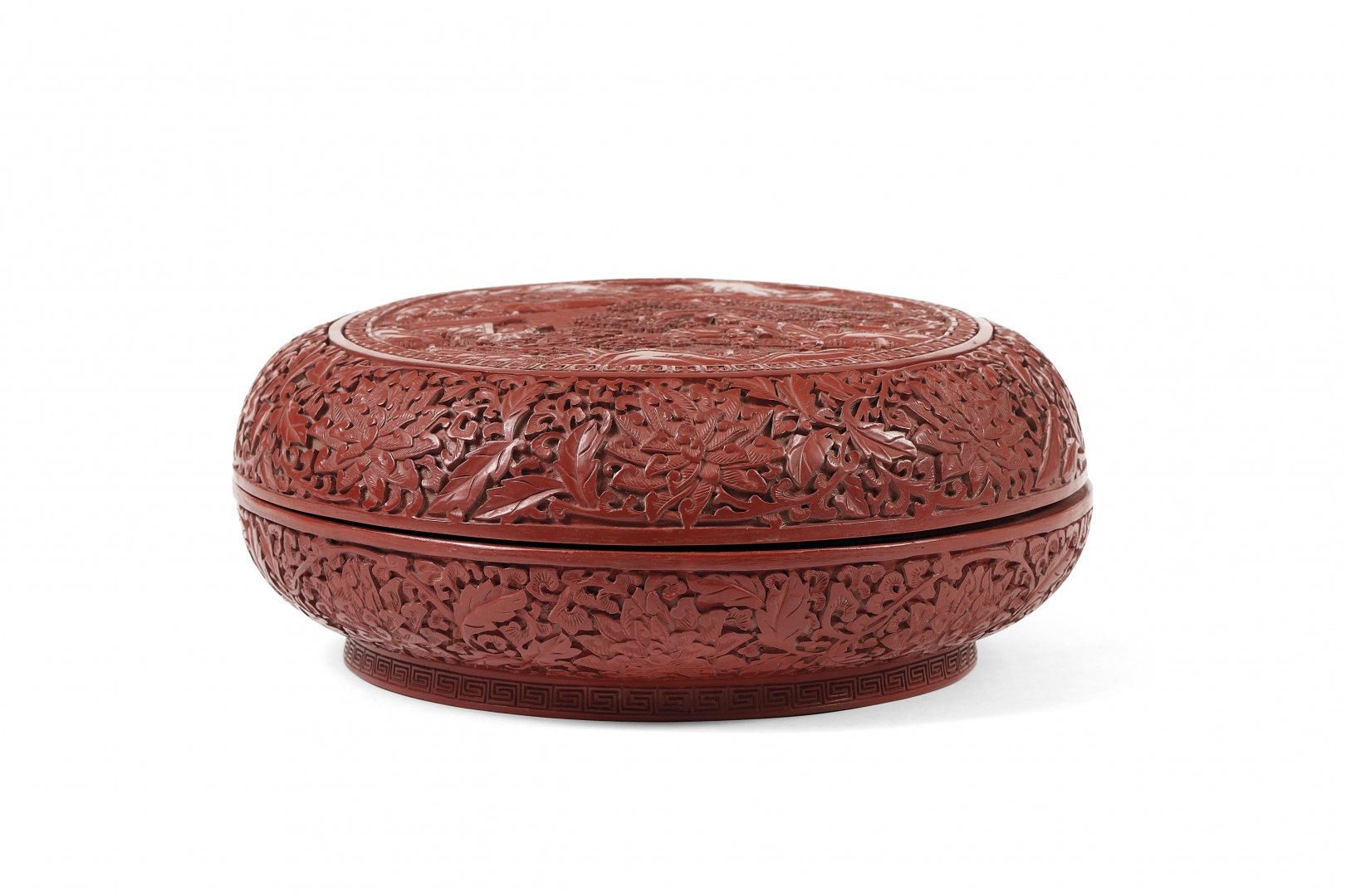 SCATOLA CIRCOLARE IN LACCA INTAGLIATA Cina, Dinastia Qing, XIX secolo