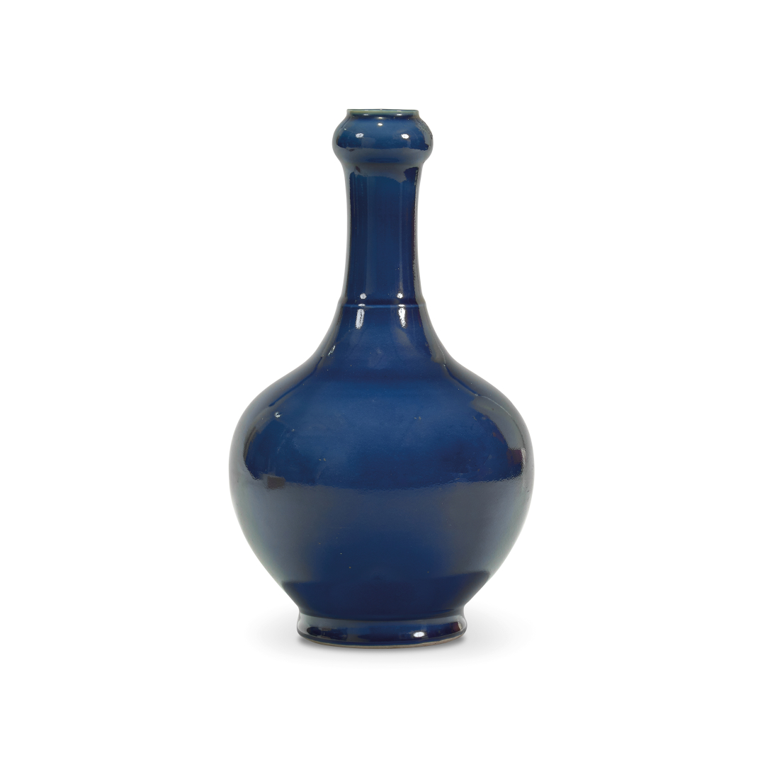 Porcellana con invetriatura blu, marchio apocrifo di Guangxu al centro della base.